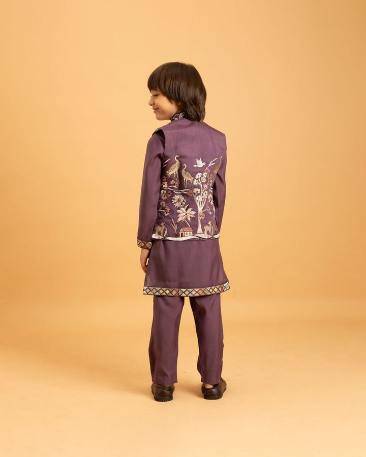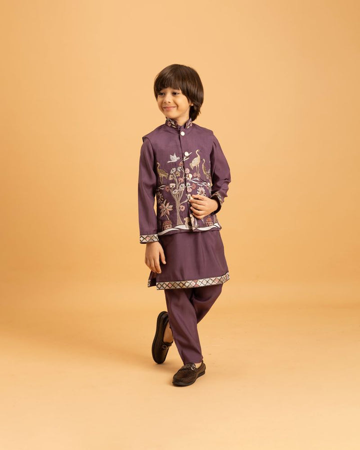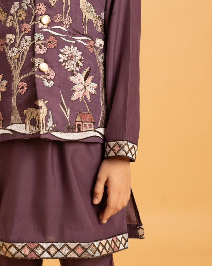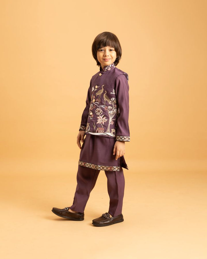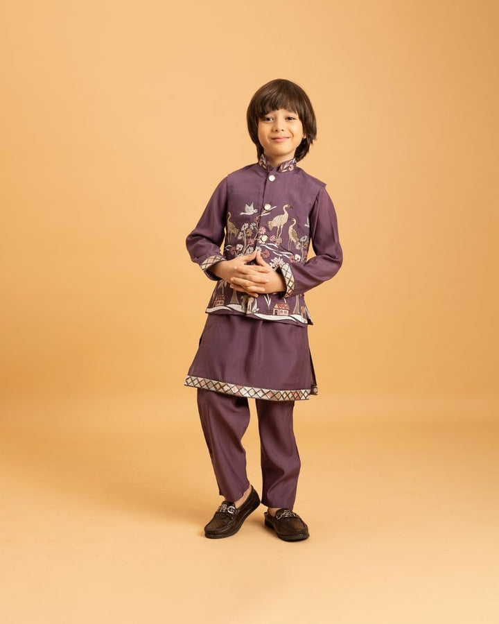 Purple Mini Ethenic Kids Ware Special Koti- Kurta With Pent
