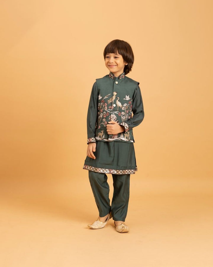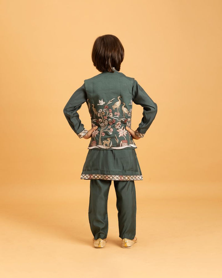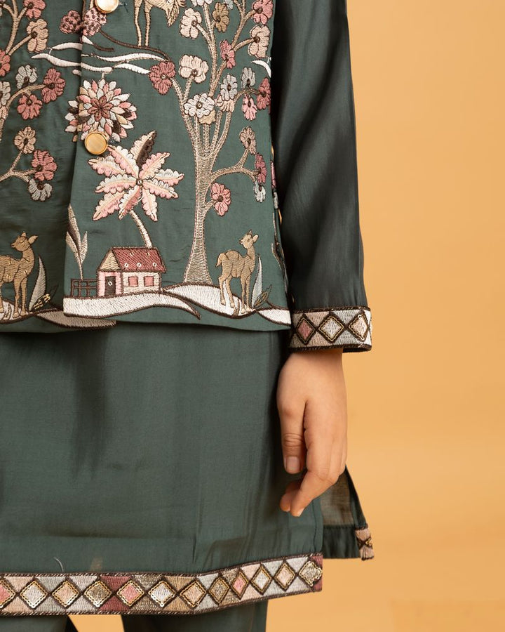 Green Mini Ethenic Kids Ware Special Koti- Kurta With Pent