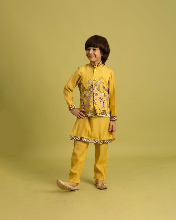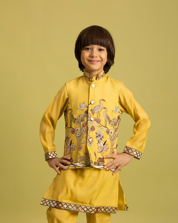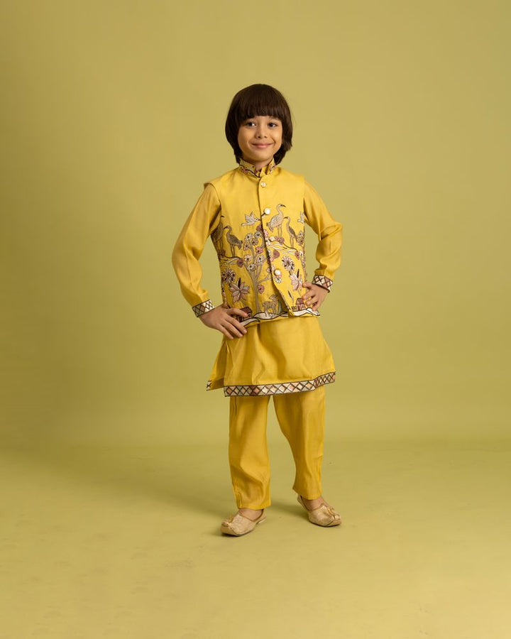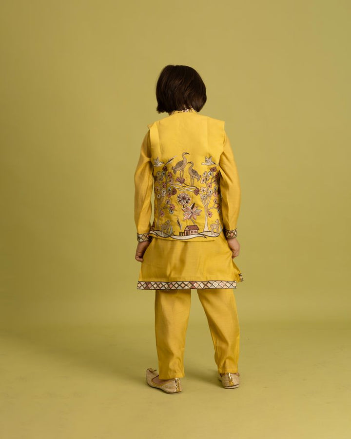 Yellow Mini Ethenic Kids Ware Special Koti- Kurta With Pent