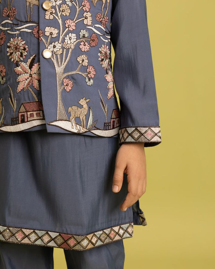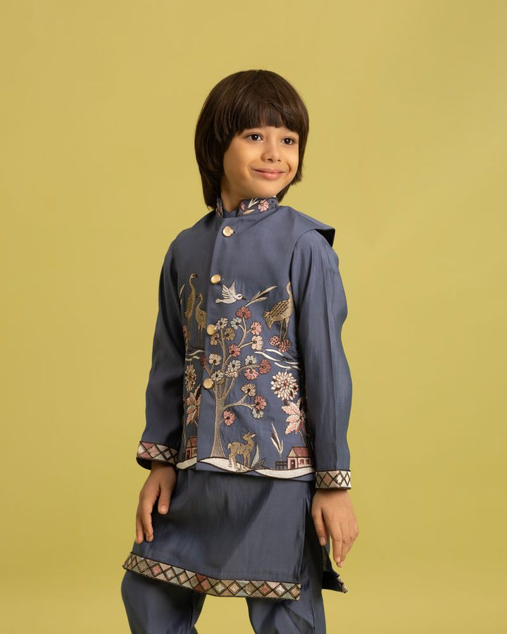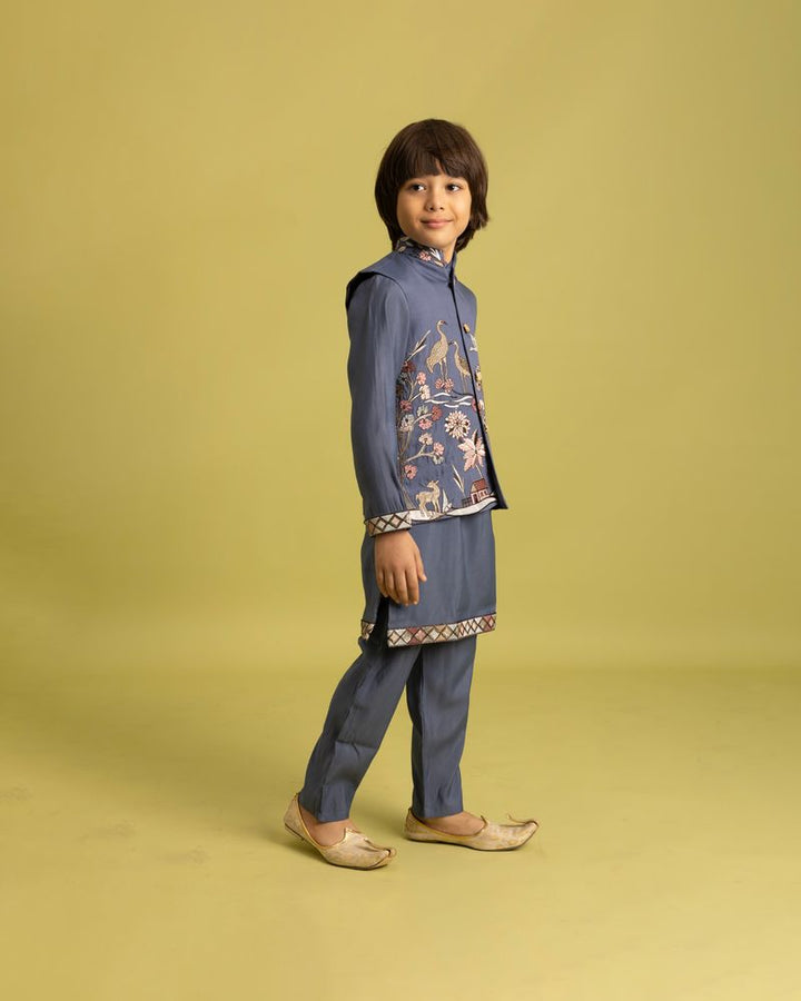 Blue Grey Mini Ethenic Kids Ware Special Koti- Kurta With Pent