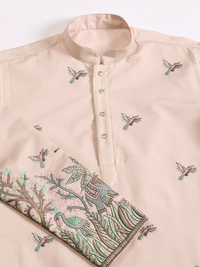 Beige Viscose Silk with Thread & Sequin Embroidery - Designer Men's Kurta