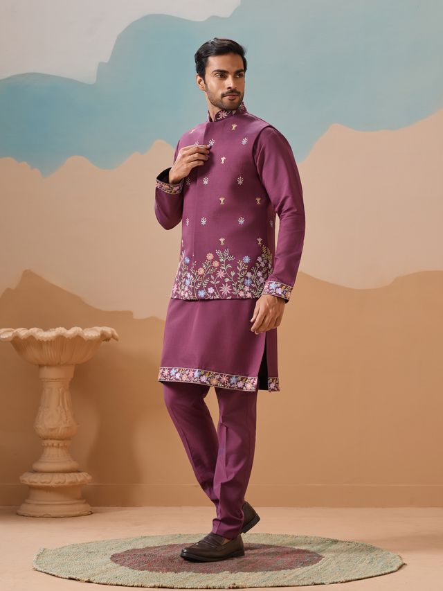 Dusty Multi Thread with Sequence Embroidered Work VISCOSE SILK - Designer Men's Kurta