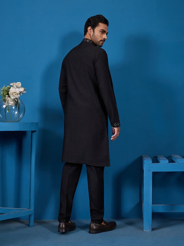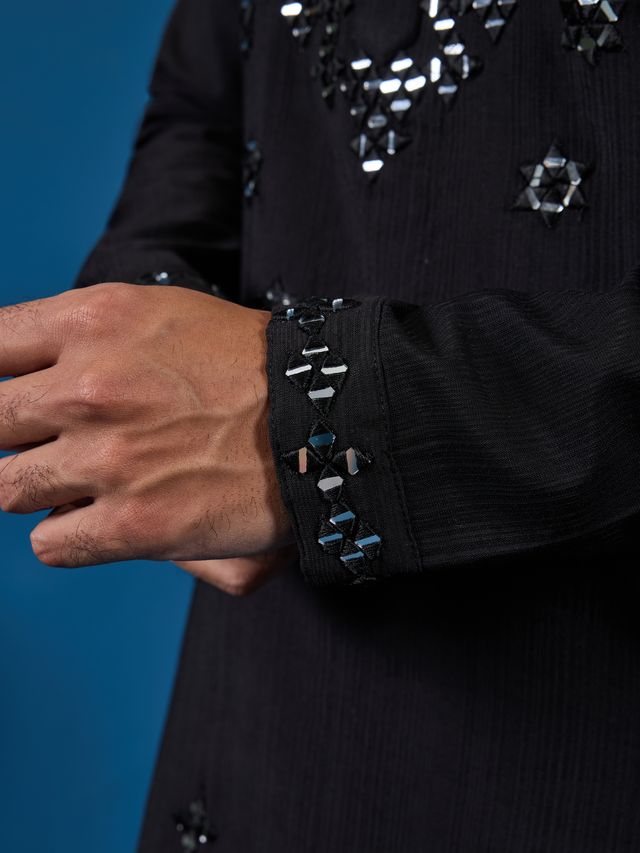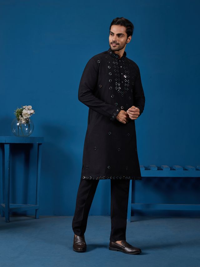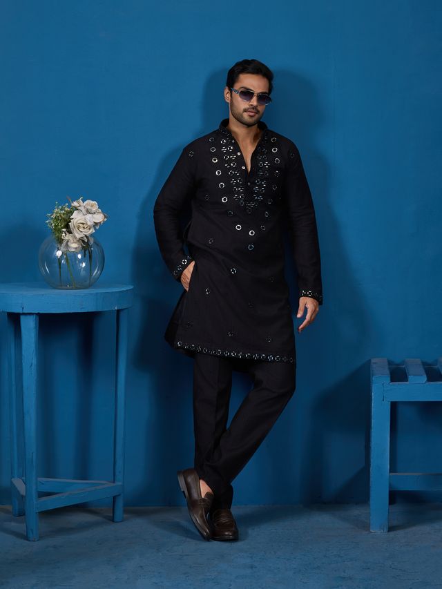 RANI PINK REAL MIRROR WORK WITH THREADS VISCOSE SLIK- DESIGNER MENS KURTA